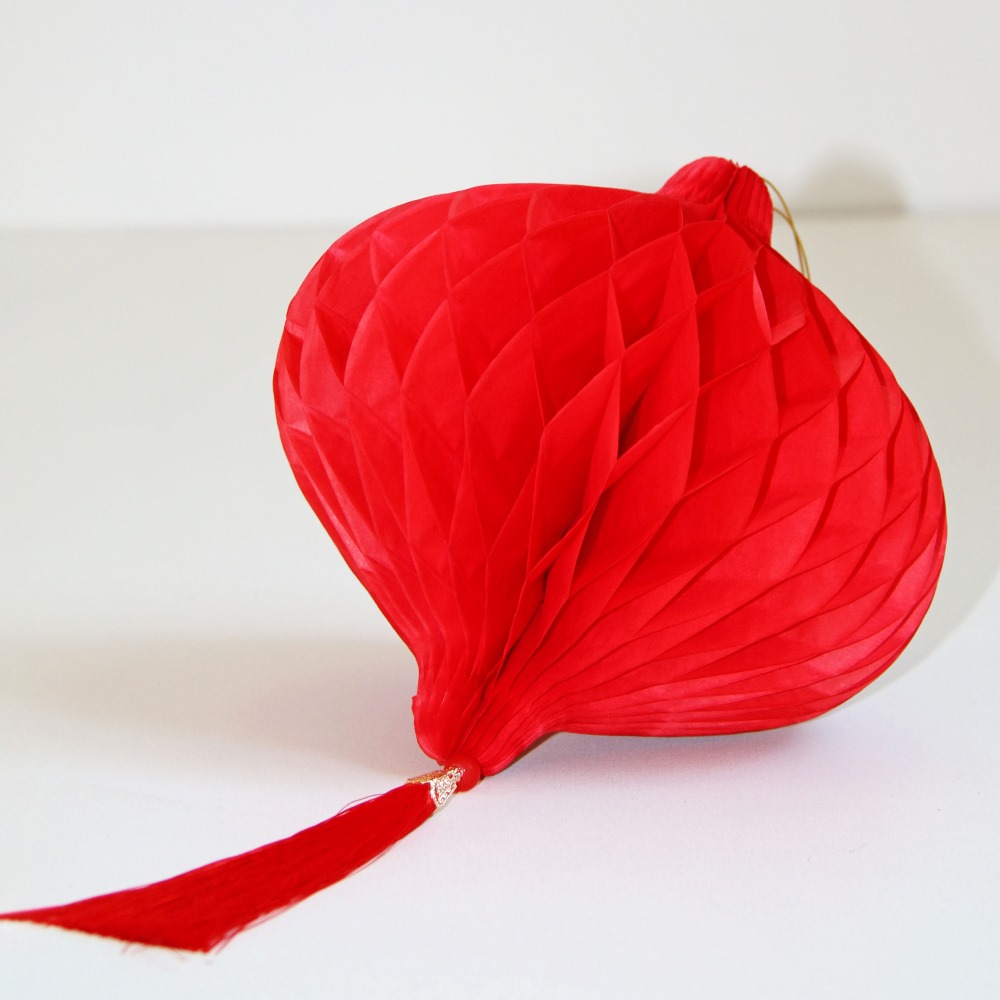 Бумажное украшение Шар-соты с кисточкой, красный - 1шт.