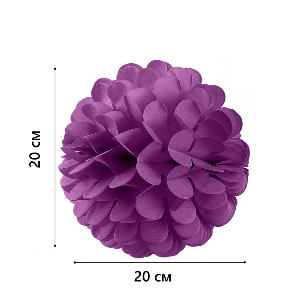Бумажное украшение Цветочный шар-соты 20 см, фиолетовый