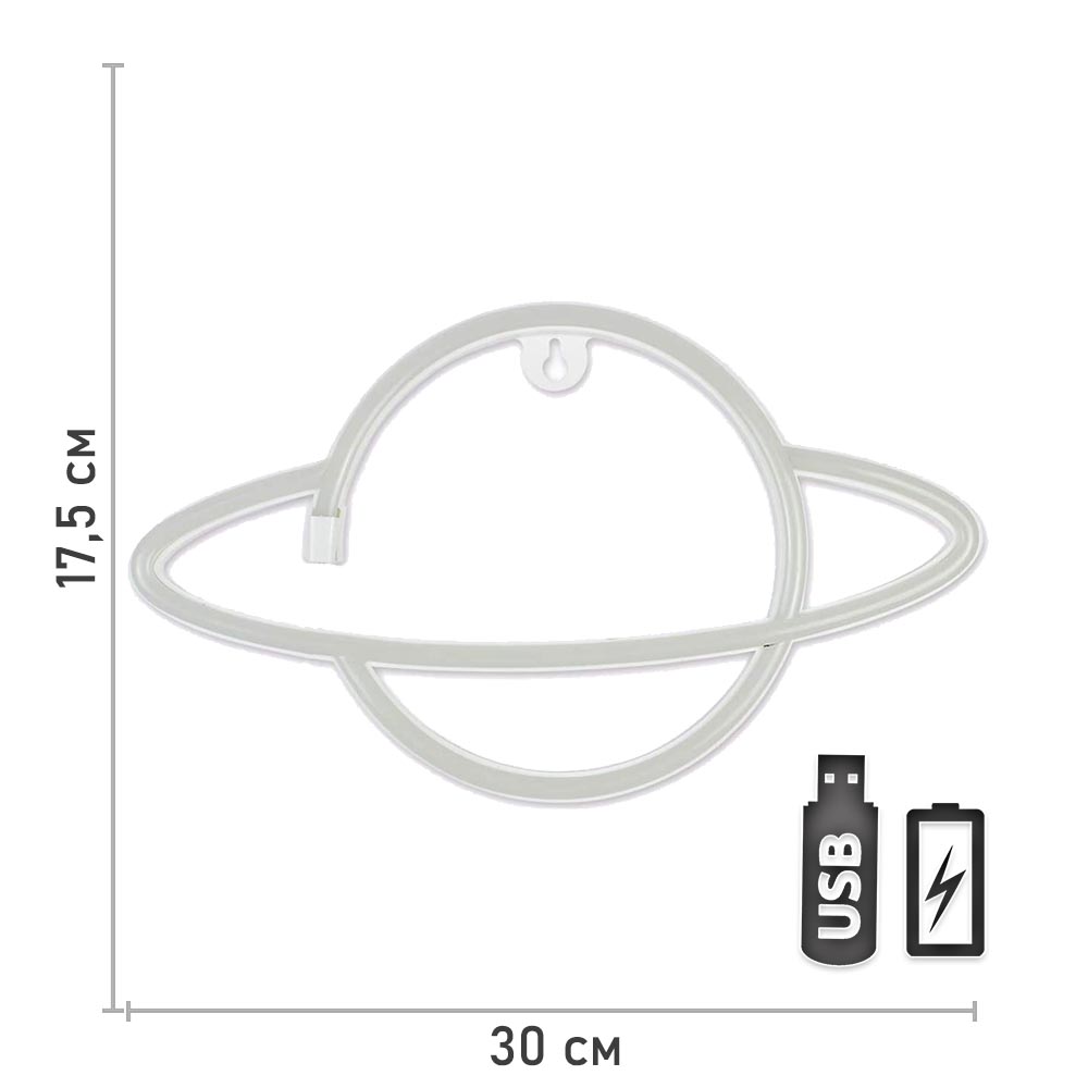 Неоновая подвеска "Сатурн" 30 х 17,5 см, от батареек и USB, розовый+желтый