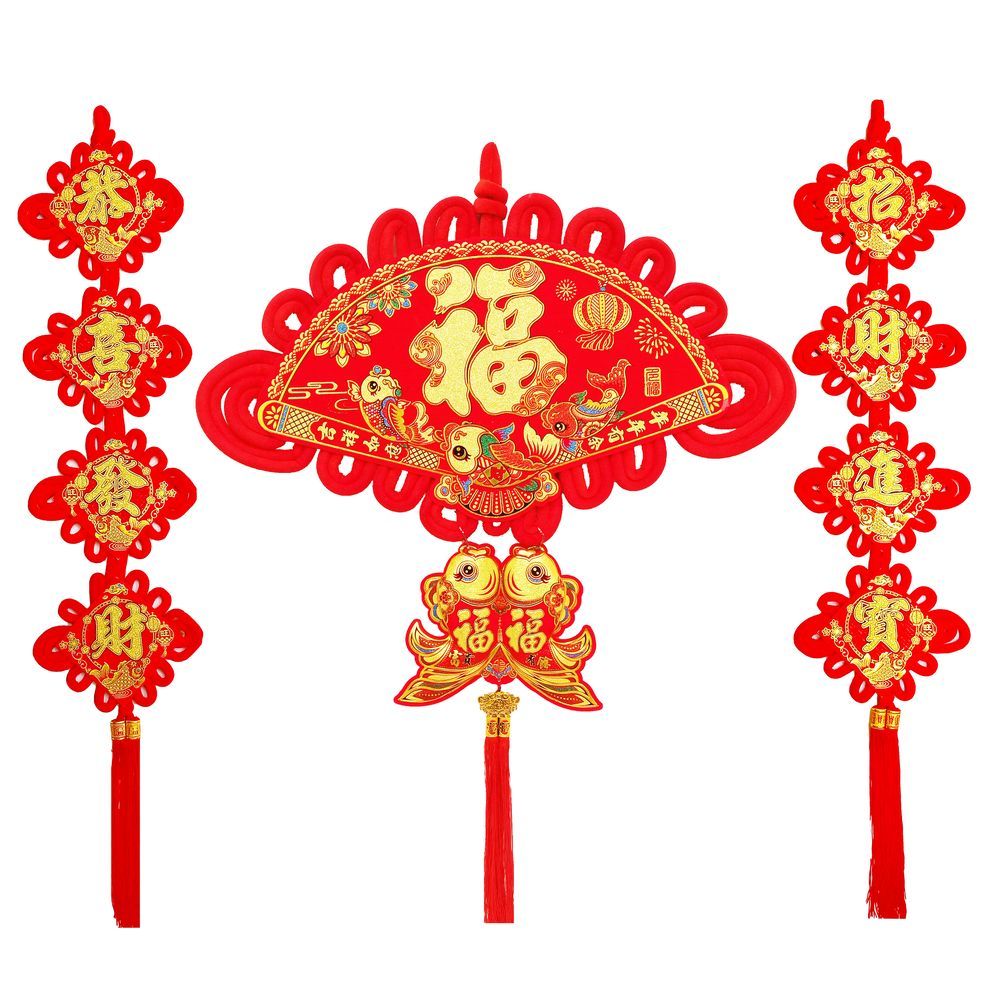 Китайский узел веер золото НАБОР 2шт (70х100см + 23х112см) рыбки, Богатство
