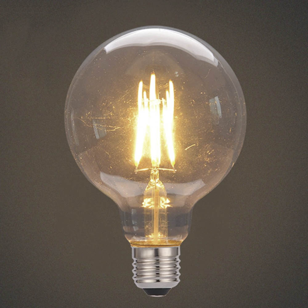 Лампа светодиодная G95 E27 W4 винтажная лампа с теплым светом 2700K. Мощность 4 Вт, что заменяет по способности освещать – традиционные лампы 20Вт. Винтажная лампа предназначена для установки в декорации и гирлянды, освещения баров и ресторанов. Длительный срок службы – до 25 тысяч часов. Угол освещения: 360 °. Может устанавливаться как внутри, так и снаружи помещений.