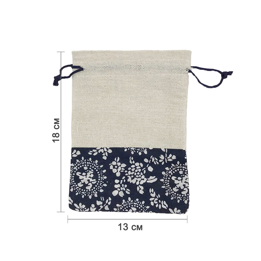 Мешочек из искусственного льна и сатина 13х18 см, бело-бежевый