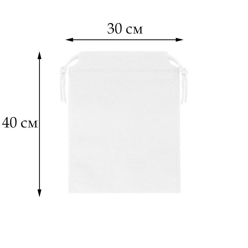 Мешочек из спанбонда, размеры 40х30см, со шнурками, подходит для многоразового использования. Плотность материала: 55 г/м².