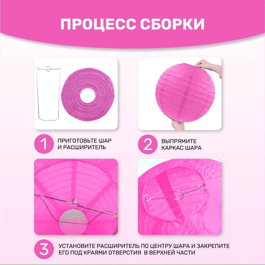 В комплект входит 8 бумажных фонариков и лента атласная.