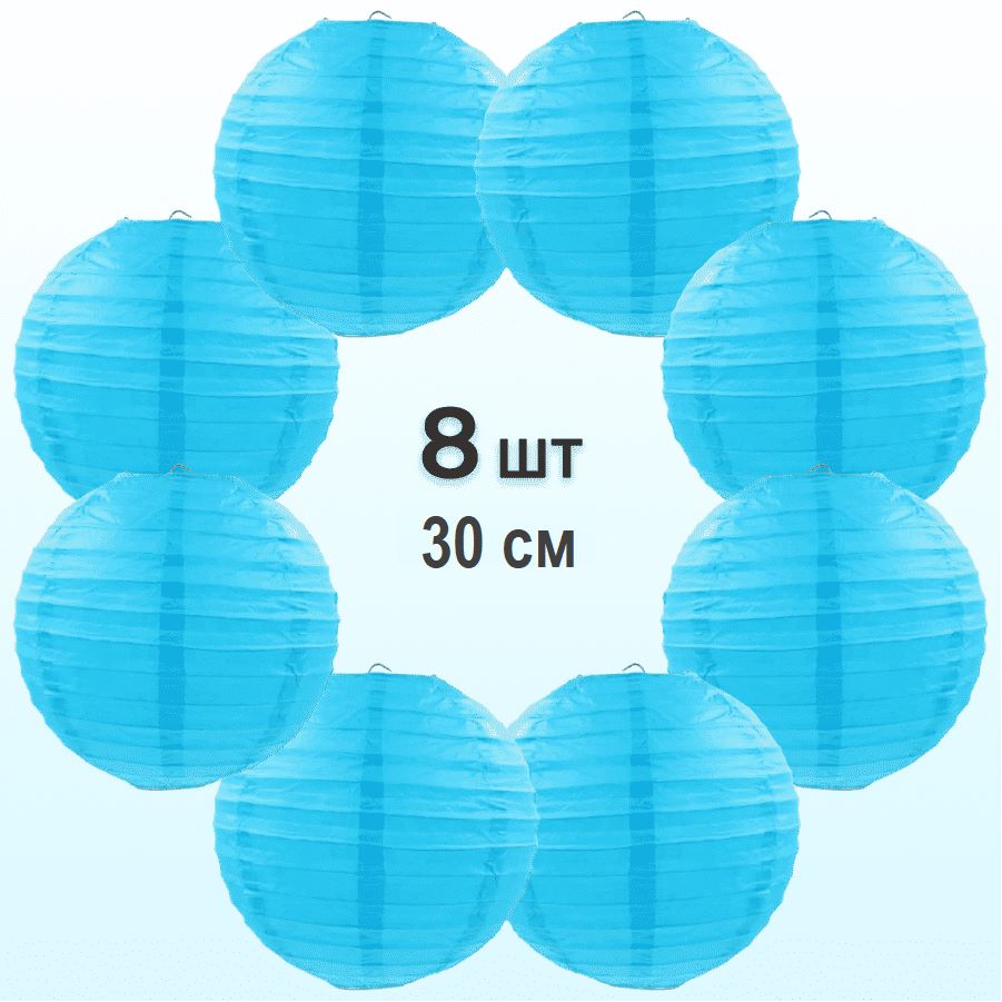 Комплект подвесные фонарики 30 см х 8 шт, светло-синий