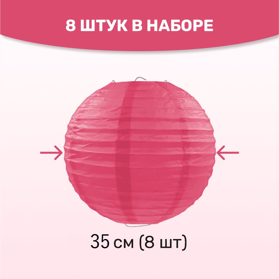 В комплект входит 8 бумажных фонариков и лента атласная.