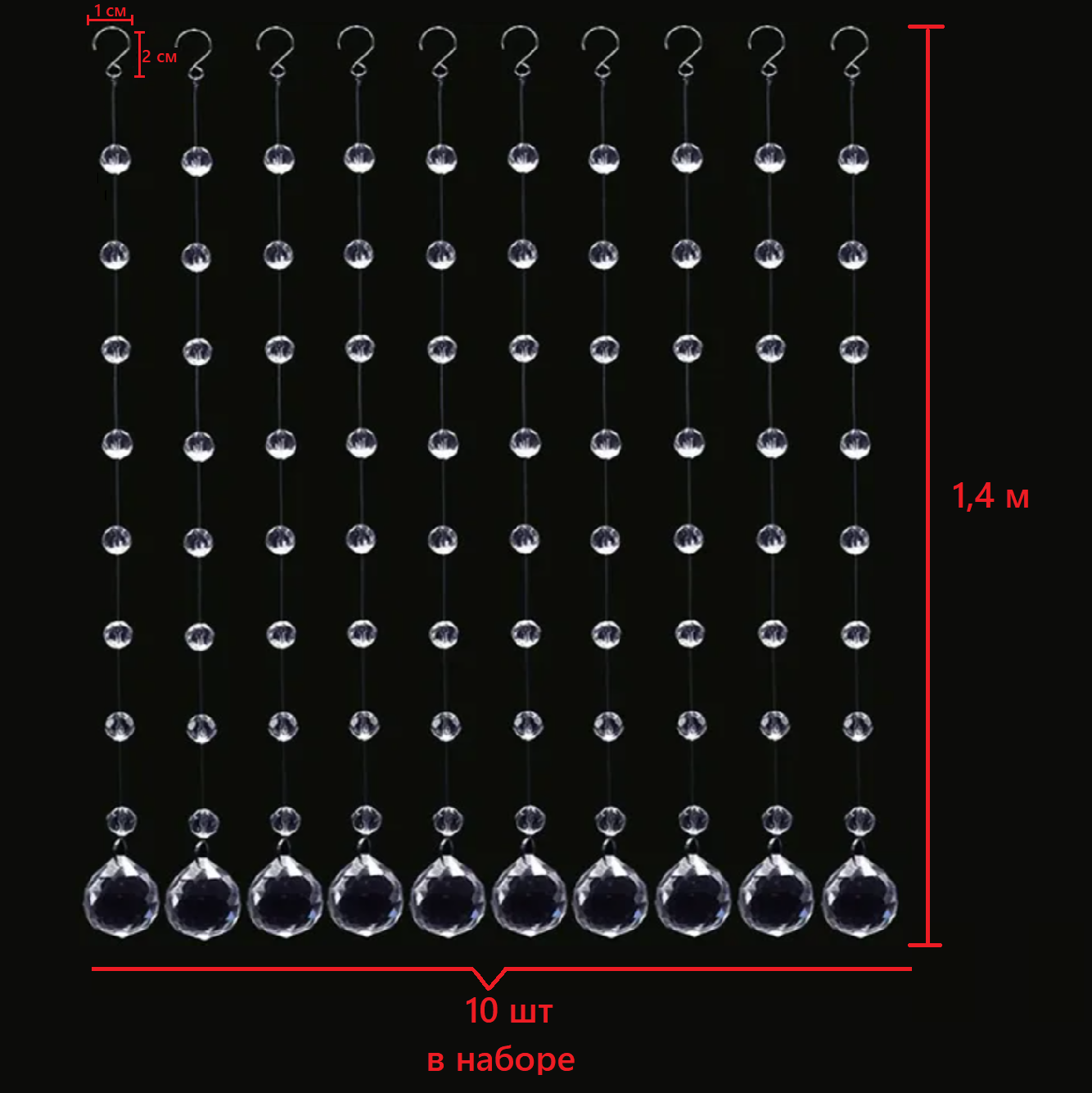 Набор струн с хрустальными бусинами №7, 10шт х 1,4м