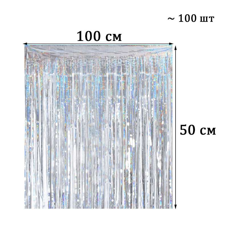 Навес Капли дождя 100 х 50 см 100 шт, голография серебро