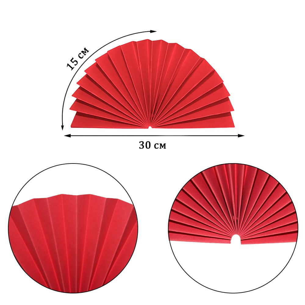 Веер легко раскрывается, фиксируется в форме полукруга или круга и сохраняет аккуратный внешний вид. В сложенном виде занимает минимум места, что удобно для хранения и повторного использования.